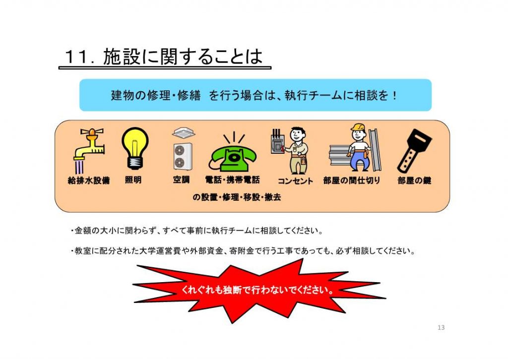 薬学部内での施設、設備の新設、改修、修繕などについては事前に執行チームまでご連絡ください。