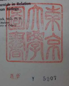 また、「東京大学図書」の蔵書印が押印されていることも多いです。